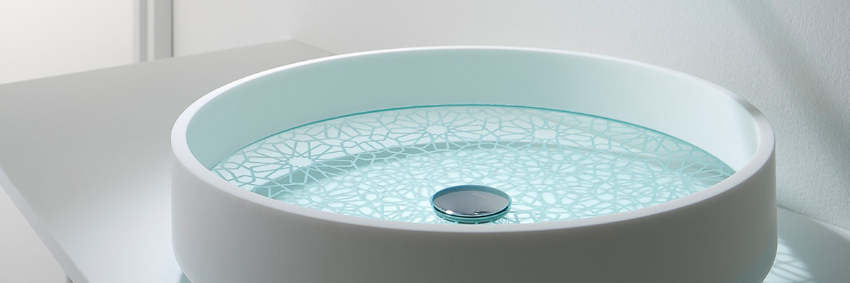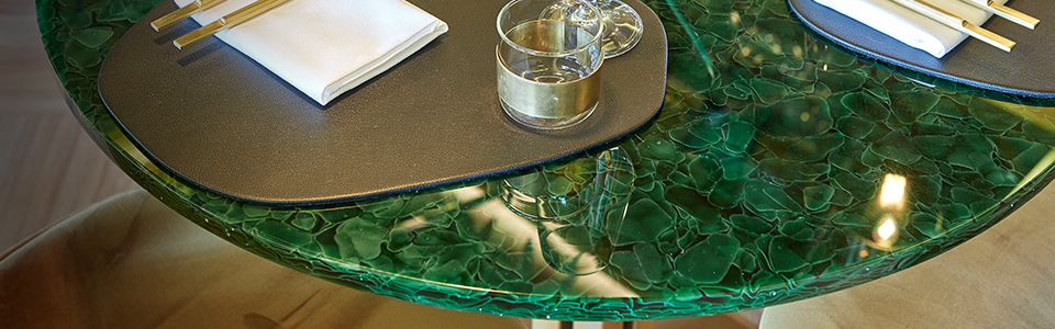 Producido 100% con vidrio reciclado, es un modelo de tecnología ejemplar que se traduce en un material exclusivo, duradero y traslúcido. Interior y exterior.